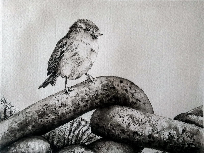 (penna nera, blu, rossa, verde e tocchi di acquarello)